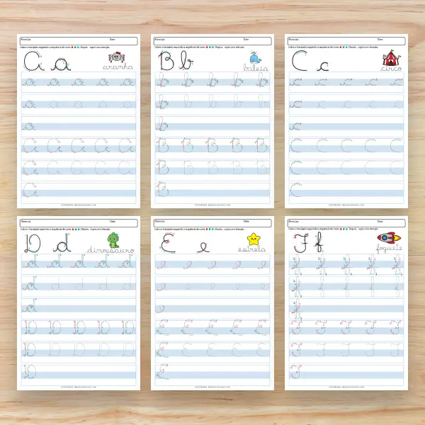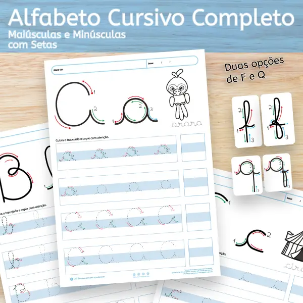 Alfabeto Cursivo Completo para Imprimir – Letras Maiúsculas e Minúsculas com Setas | Educação Infantil | Treino de Escrita PDF