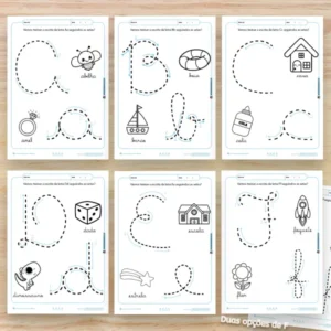 ALFABETO – Cubra o Tracejado e Pinte as Figuras (PDF) | Coordenação Motora e Alfabetização