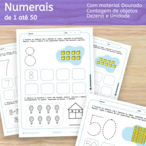 Atividade de Matemática Números de 1 até 50 com Dezena e Unidade e Referência do Material Dourado (PDF)